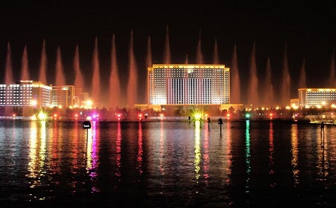 噴泉,使靜水變為動水,使水也有了靈魂,又輔之以各種燈光效果,使水體具有豐富多彩的形態,可以緩沖、軟化城市中“凝固的建筑物”和硬質的地面,以增加城市環境的生機,有益與身心健康并能滿足視覺藝術的需要。